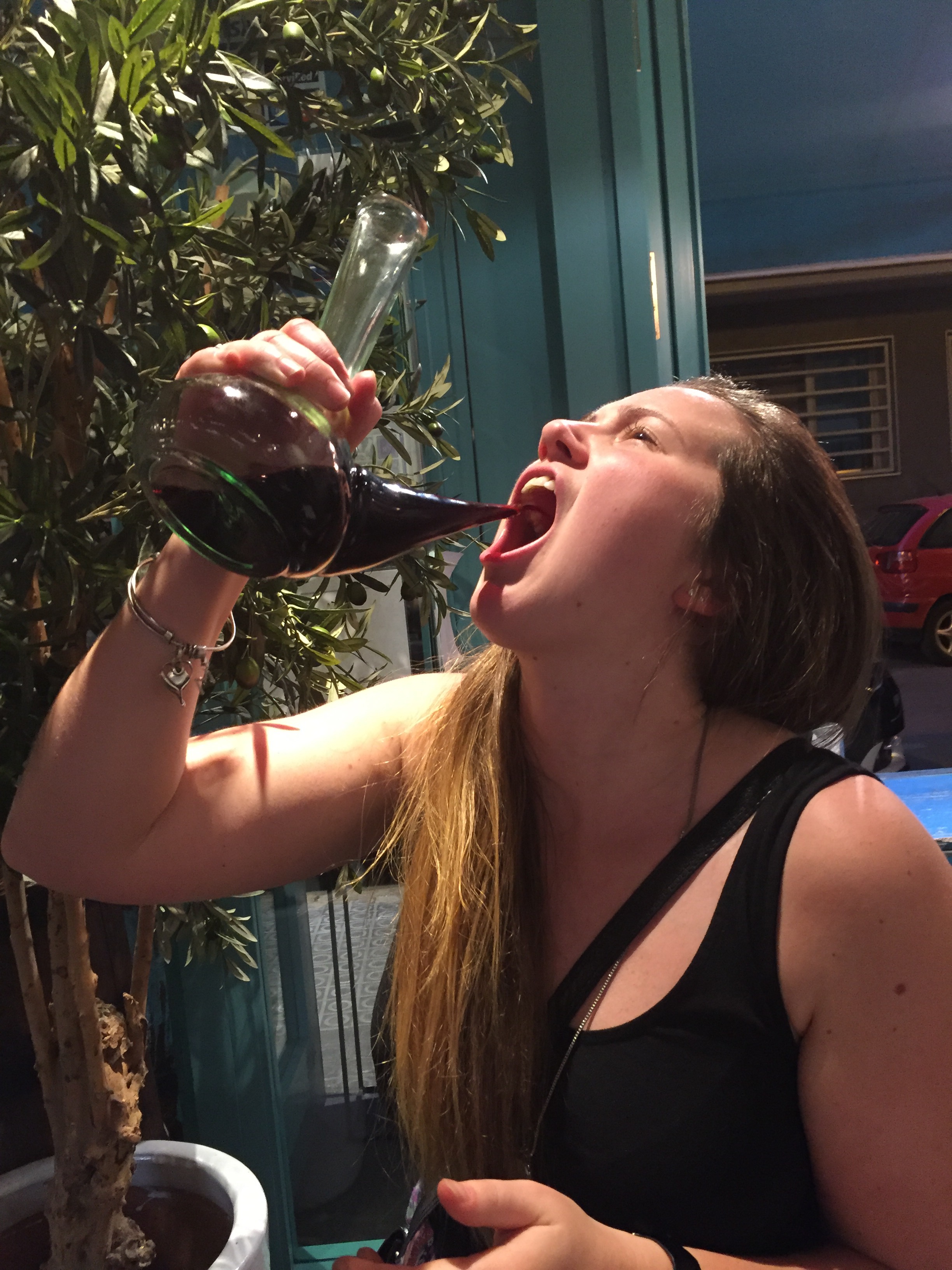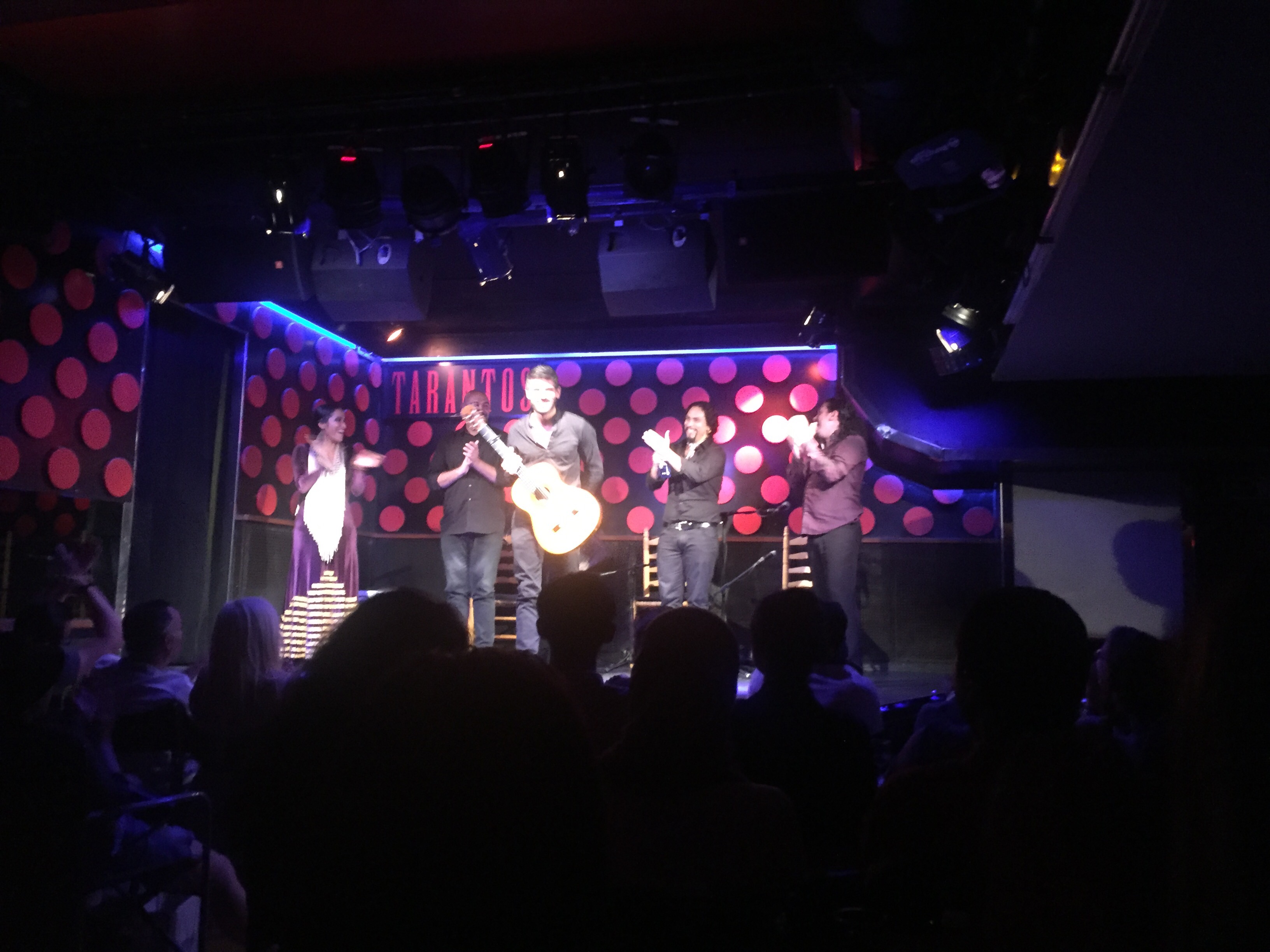 We jumped on board the suggestion of the Sandermans Tapas Experience – ¡¿Vamos de tapas?! With the charming Eric at our side, we walked to three bars in the Barceloneta and El Born districts, the heart of the city, and enjoyed a selection of the most popular tapas in the country: patatas bravas, chorizo criollo, pan amb tomaquet, pintxos and croquetas de jamón (nomnomnom). Not only that, we mastered the art of drinking as Catalans do using a porrón (a traditional wine pitcher)! After eating (and drinking) our fill we rushed in the rain (I mean really weather – pick one and stick to it) to our flamenco show. We attended “Tarantos – the oldest flamenco tabla on in Barcelona”. Now as none of us had seen a flamenco show before, we were not exactly sure what to expect. To summarise it in two words, I would say it’s is both beautiful and aggressive. They had incredible, lighting-fast footwork; the cante (singing) and toque (guitar playing) was sensual; and the jaleo (vocalizations), palmas (handclapping) and pitos (finger snapping) all added to the terrific atmosphere! I would recommend a show to anyone! If only I didn’t get a blood nose half way through the night would have been perfect! Until tomorrow Barcelona…