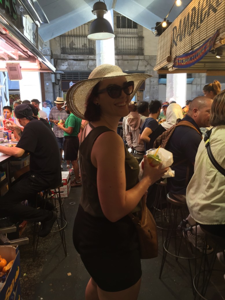 Before we go more into Gaudí, let me tell you about our lovely morning which consisted primarily of the beach (yay!). All 3 of us woke up this morning and excitedly packed our little bags for an excursion we had all been waiting for – Barceloneta Beach! We jumped on then metro (with potentially 1,000 others) and towards the salt and sand. Wow. Umbrellas and people as far as the eye could see! We stoll ourselves a patch of sand and enjoyed some quality downtime (although it was interrupted every now and then by offers for towels, massages, water, alcohol, warnings and jellyfish sightings and a “party” or two). As beautiful as it was to lay on the beach, one can’t help but notice how incredibly beautiful the Australian beaches are, and appreciate what you had growing up at home!After a quick stop back at the hostel to freshen up we made our way to the Mercado de la Boqueria for lunch-on-the go. If you ever go to Barcelona you should check this place out! It is a hustle and bustle of people, food, colour, sound and smells that you wouldn’t want to miss! Not to mention all the tasty treats you can grab!