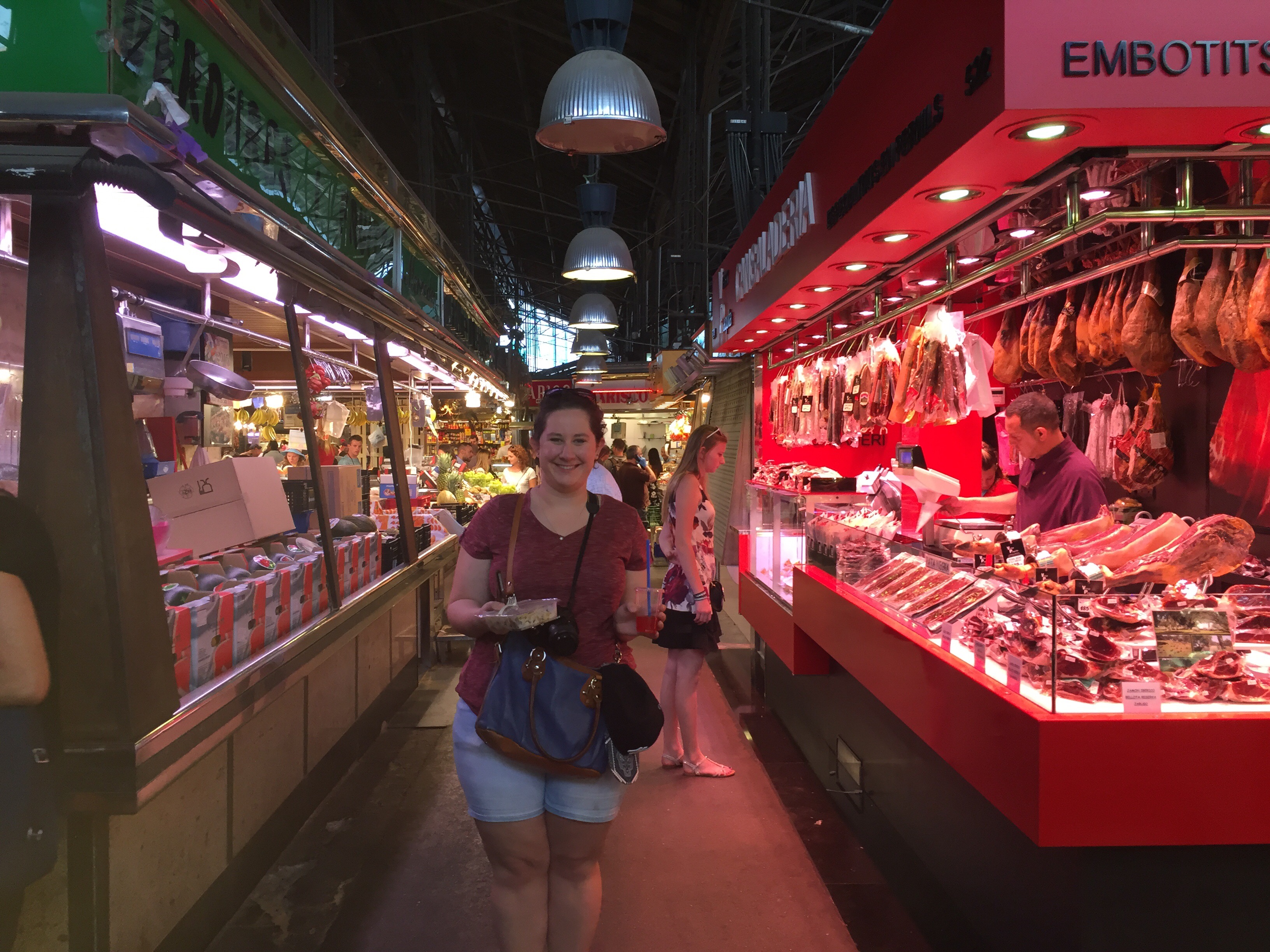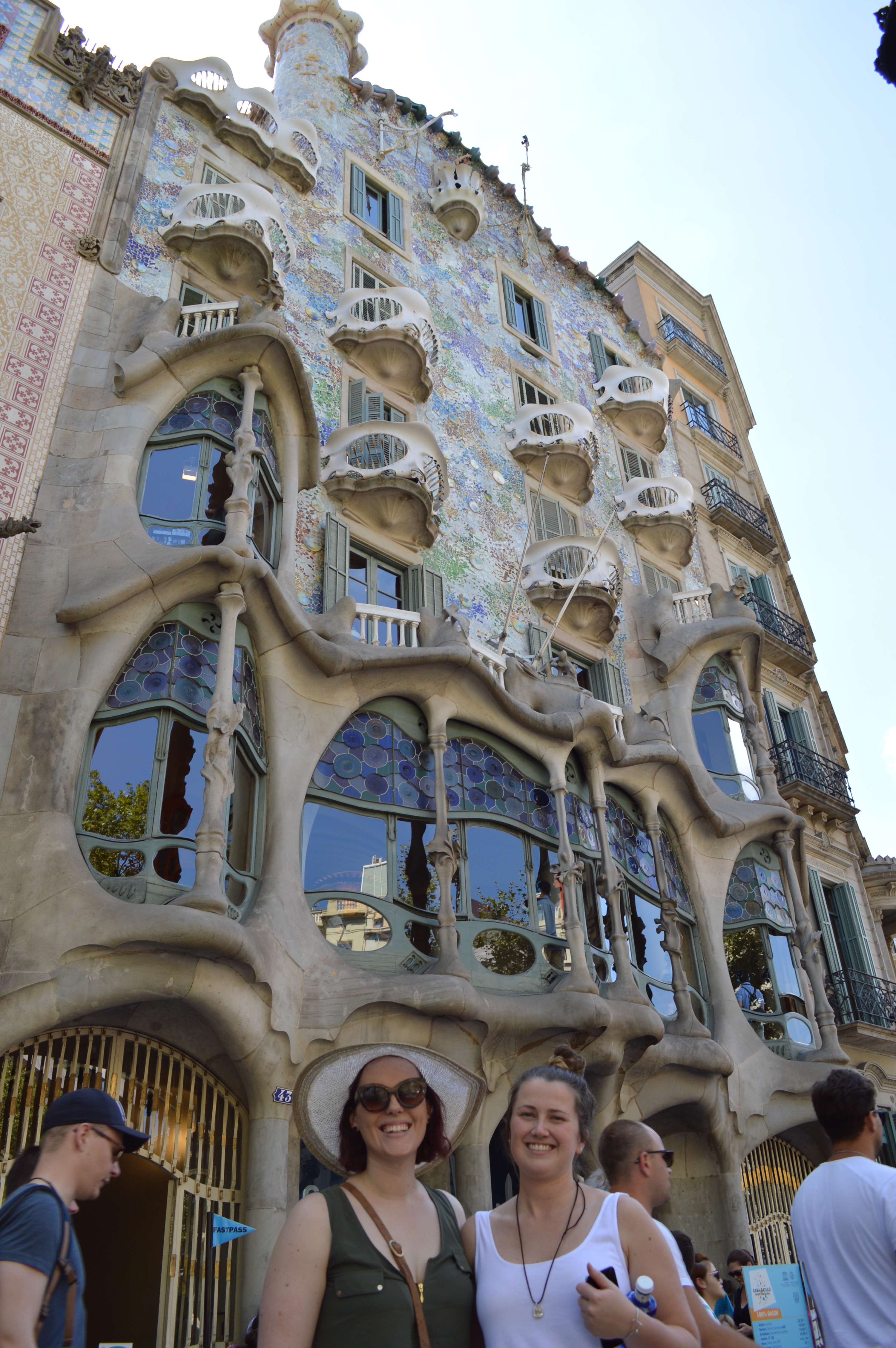 Before we go more into Gaudí, let me tell you about our lovely morning which consisted primarily of the beach (yay!). All 3 of us woke up this morning and excitedly packed our little bags for an excursion we had all been waiting for – Barceloneta Beach! We jumped on then metro (with potentially 1,000 others) and towards the salt and sand. Wow. Umbrellas and people as far as the eye could see! We stoll ourselves a patch of sand and enjoyed some quality downtime (although it was interrupted every now and then by offers for towels, massages, water, alcohol, warnings and jellyfish sightings and a “party” or two). As beautiful as it was to lay on the beach, one can’t help but notice how incredibly beautiful the Australian beaches are, and appreciate what you had growing up at home!After a quick stop back at the hostel to freshen up we made our way to the Mercado de la Boqueria for lunch-on-the go. If you ever go to Barcelona you should check this place out! It is a hustle and bustle of people, food, colour, sound and smells that you wouldn’t want to miss! Not to mention all the tasty treats you can grab!