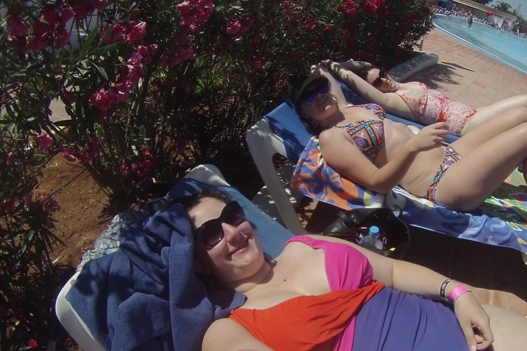 Waterparks. What do you think of when you think of water parks? Screaming kids, feeling like a big kid, slides, pools, bright, fun, being just a little bit scared and splashtastic thrills? Well that’s exactly what Aguamar water park in Ibiza was like, except the majority of the screaming (of joy) was coming from us! Slipping, shooting and often tumbling out of the slides, giggling and squealing all the way. Probably not the most wild/giant park you have ever seen but it was excellent! Among our favorite rides were black hole, spiral slide and foam speed racer. We had a delicious picnic lunch to refuel before we continued to amble up and down more stairs than we could count. Once we had our fill of thrills we went back to the hostel to dry off before our romantic night out at the San Antonio sunset.
