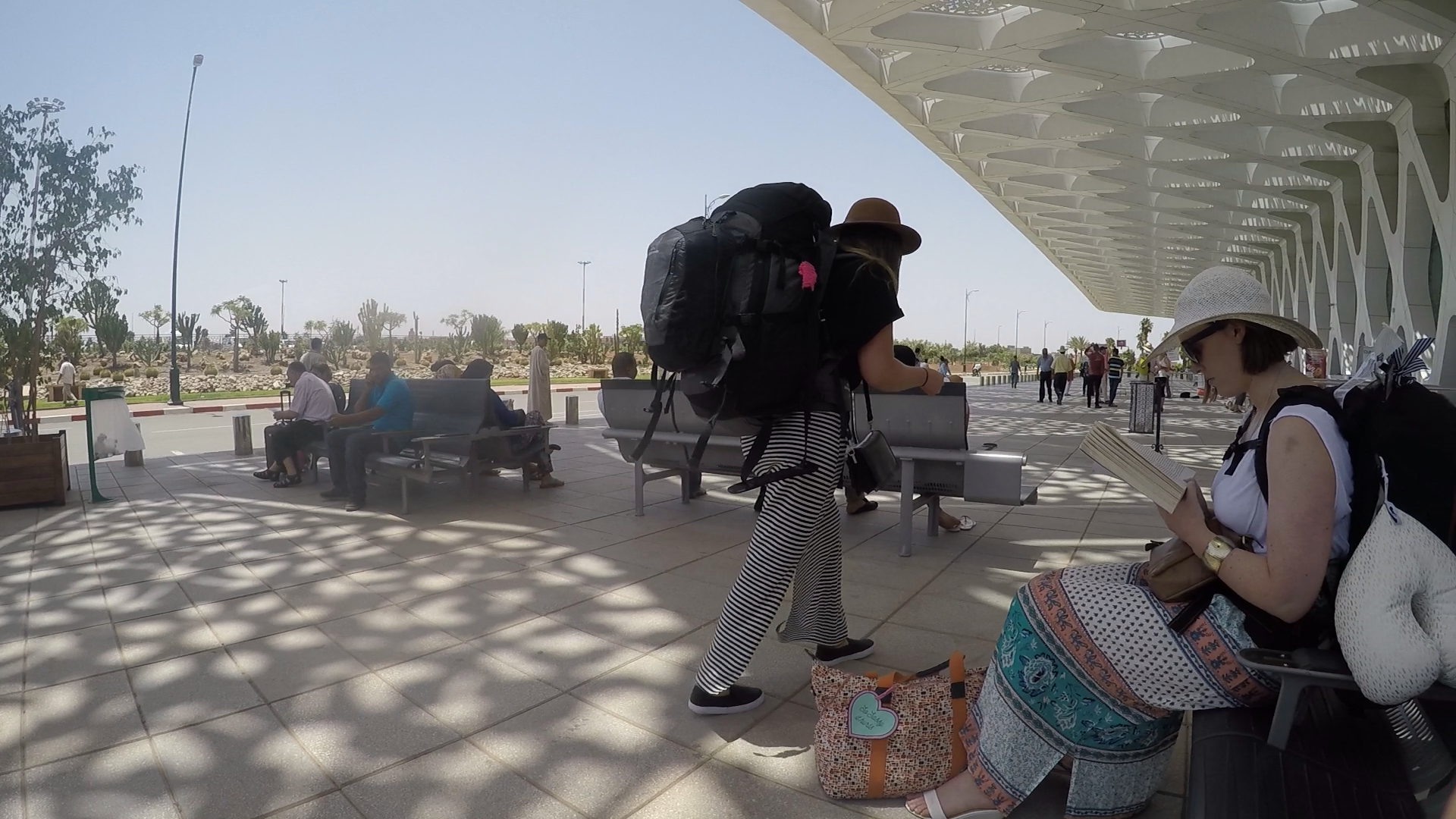 Yay! We made it to Morocco! Which in itself was partially a surprise. Getting to the plane and the airport had been quite an ordeal. We could not find aaaannnyyywhere for breakfast – apparently the only flaw in the Spanish lifestyle is that if you want to get up early and start your day it does not serve you well… We finally found a Starbucks but by then we were a smidge behind schedule. The airport bus stop was not the easiest to find – our hostel staff were not super descriptive, they just told us to go back to where we got off the bus, seemed easy enough. However, when we got there (which is a huge round about) there are bus stops on every corner and the one we needed was not where we had disembarked upon arrival. Once we had deciphered the map and were making our way to the correct stop, we saw the bus heading off without us! Thankfully with some pleading waves and rushing movements the bus driver was kind enough to pull over for us! Phew! Feeling like we were now well behind schedule (but excited that we didn’t have to wait another 15/20 minutes for the next bus) we were disheartened when we arrived at the airport, came up the escalators and saw the gigantic lines at all the check in counters (and no staff to speak of to assist anyone in where to go). While we waited in line with fingers crossed Max and I took turns running around trying to see if there was a faster/easier option (come one Madrid, where are your signs???). Finally we found the self-checkin counters and we were off and away! The only thing standing in the way of us and the gate was the hour long stop at the currency exchange counter..I honest do not know why they were so slow. It was mind-numbing.
