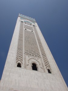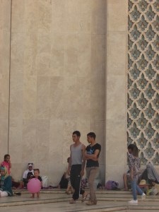 Where we walked was almost like a cliff high above the beach which was stretches of sand with swarms of people. At first we were not sure that all of the figures were people, we thought we must be seeing things due to the sheer volume. But no, everyone it seemed was soaking up the boiling sun at the beach! Walking around we were offered a variety of different things to purchase. The hardest people to say no to are always the children. Once we were about to melt from the heat we tried to find food. Mohamed recommended a restaurant and we enjoyed our meals and good conversation as we talked about why we decided to come to Morocco and what we were most excited about. Next we headed to the Hassan II Mosque.