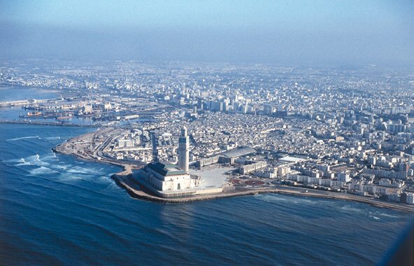 Casablanca, made famous by Humphrey Bogart in the film “Casablanca”, is a port city and commercial hub in western Morocco, fronting the Atlantic Ocean. The city is a blend of Moorish style and European art deco. As the country’s economic capital, one can find lots of art galleries, fashion designers, industry and money. However, it seems to be a city full of contradictions. Home to wide boulevards, well-kept public parks, fountains and striking colonial architecture, but is also fringed by large shanty towns and simmering social problems. We certainly passed all of these different features on a drive to the waterfront for a bit of a stroll and some lunch.