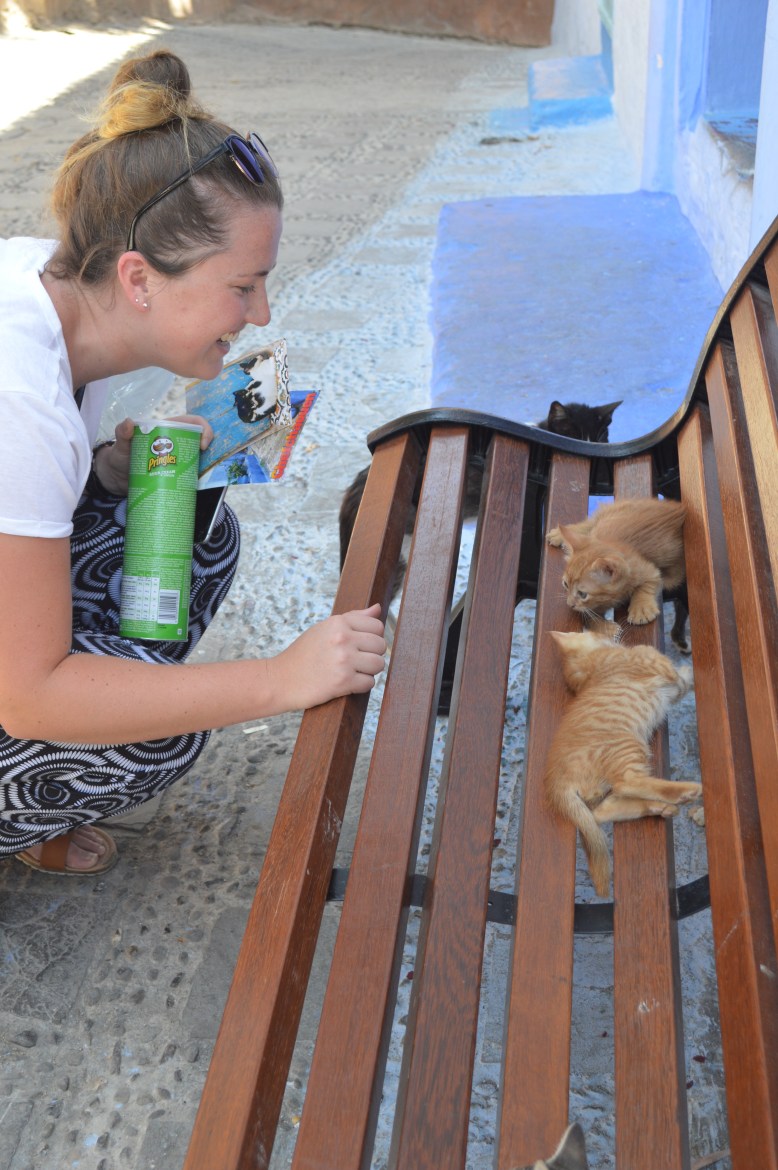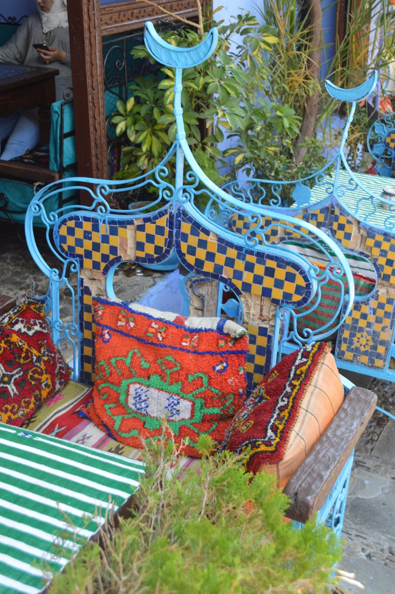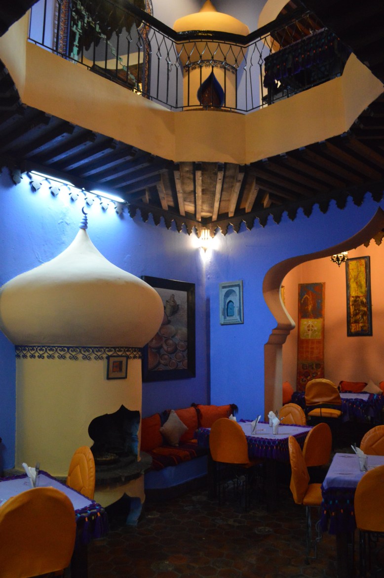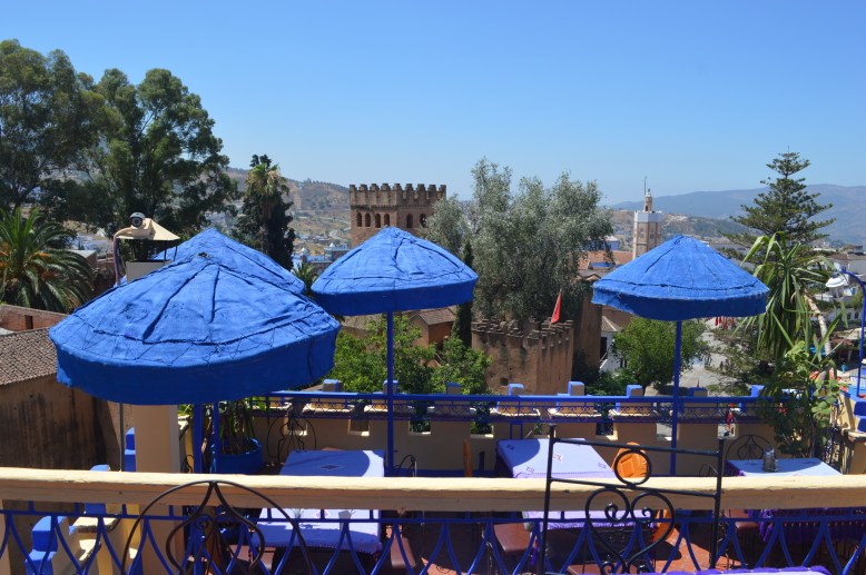 We met up with the rest of our tour and headed off for lunch in the main square. We had one destination in mind – Aladdin’s restaurant!! Firstly we went all the way to the rooftop terrace to admire the stunning panoramic views of Chefchaouen. We headed down a few levels to escape some of the sun and heat for our actual meal. Suited to its name, the restaurant had a romantic and enchanting feel, dimly lit with romantic red lights and littered with cushions. The food was delicious and we enjoyed a wide range of Moroccan favourites, from kefta to tajine and couscous and caught up on each other’s morning antics.