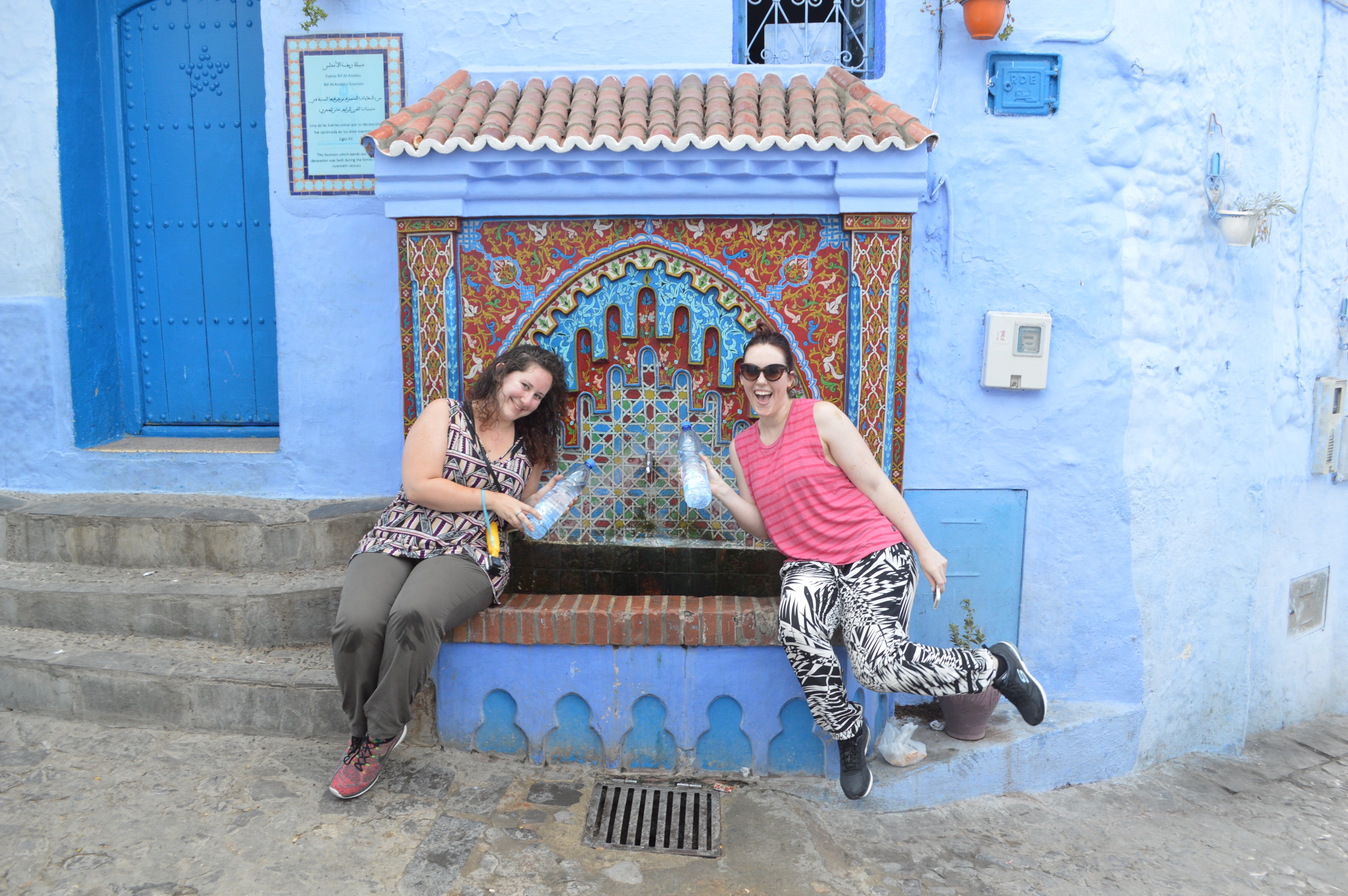 This morning we had free time to explore the beautiful Chefchaouen. We thought it would be in to try to trek up to the small waterfalls that we had head so much about – “The Cascades d’Akchour” consisting of a lower waterfall and a much taller upper waterfall as well as a handful of cascades sharing the same stream as the main waterfalls. Our plan was to go to the lower waterfall, as this was supposed to be about a 3-hour round trip. The bigger falls looked beautiful but that is more like a 6-hour round trip and we didn’t quite have that much time. We were surprised to find very little information online about how to get to the walk/where it started and which track to take (this should have been our first clue that something wasn’t right). Mohamed had pointed out a rough way yesterday, and we found one description that sounded good, so off we went! Once we reached the point where we were no longer sure where to go, we started trying some different paths that seemed to lead up towards the mountains (this should have been our second clue). After trying 3 different paths and getting nowhere we decided it was time to ask someone. We tried asking a few different people for directions and most of them looked very confused despite the fact that we showed them the pictures of the waters falls and the name (this should have been our third clue). Finally we asked this lovely man in French and he looked very concerned! He told us “No, no, you can’t walk there! It’s a 25km car ride to get to the start of the waterfall!!”. Oh dear. That was not what we had planned at all!! We were so confused!