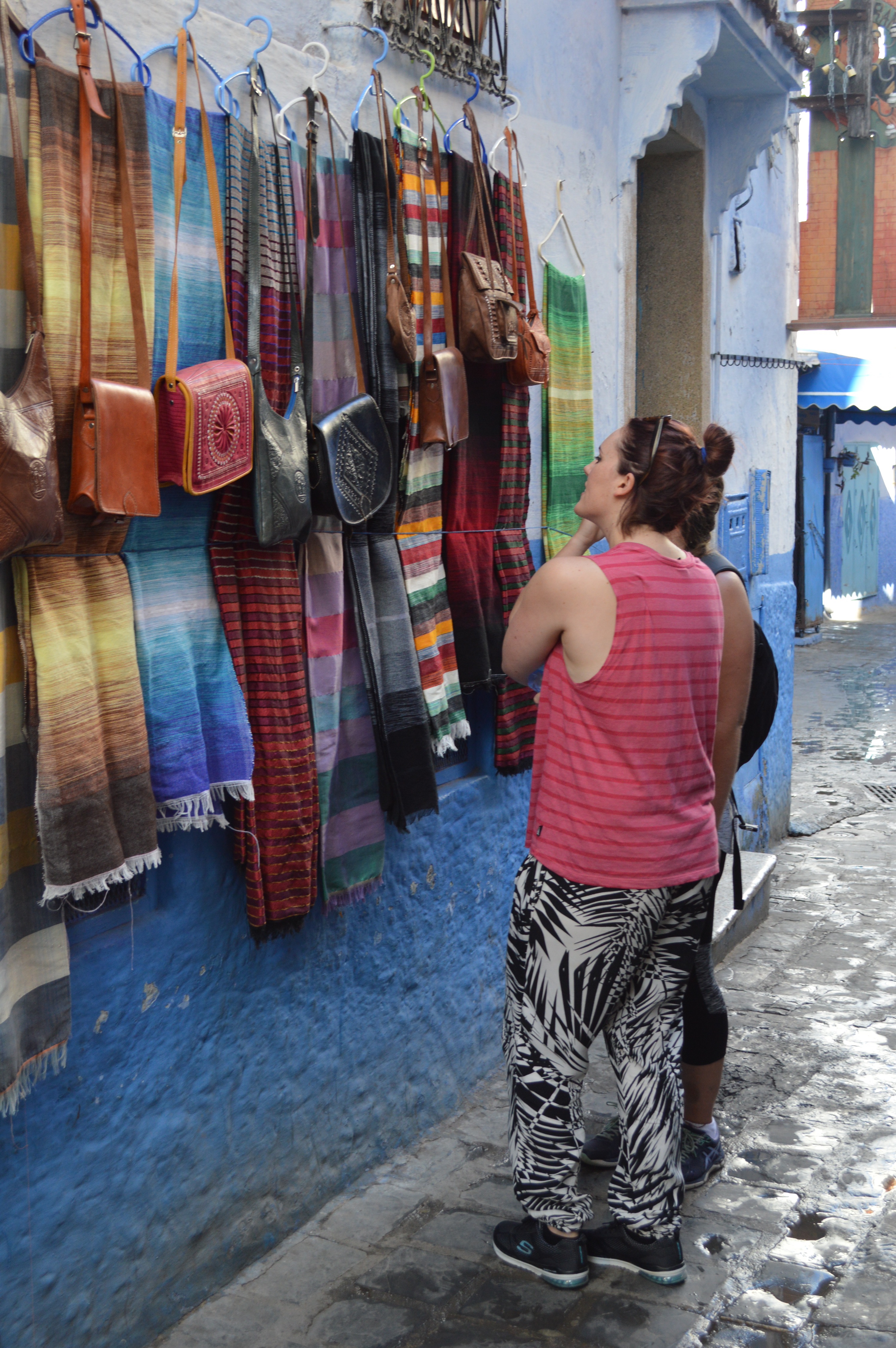 We met up with the rest of our tour and headed off for lunch in the main square. We had one destination in mind – Aladdin’s restaurant!! Firstly we went all the way to the rooftop terrace to admire the stunning panoramic views of Chefchaouen. We headed down a few levels to escape some of the sun and heat for our actual meal. Suited to its name, the restaurant had a romantic and enchanting feel, dimly lit with romantic red lights and littered with cushions. The food was delicious and we enjoyed a wide range of Moroccan favourites, from kefta to tajine and couscous and caught up on each other’s morning antics.