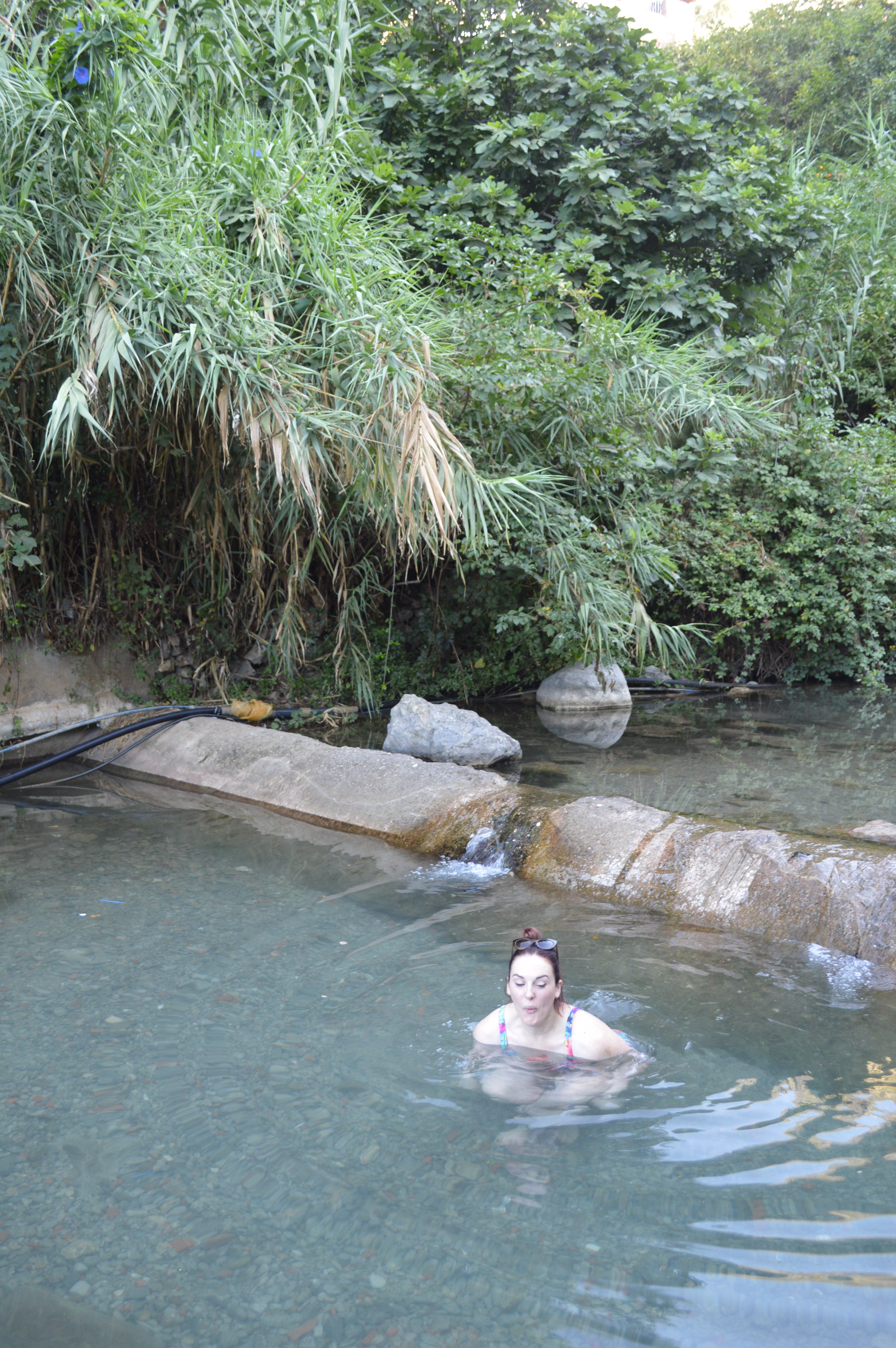 On our way back to the hotel the girls took the opportunity to swim in one of the basins of the smaller waterfalls. The girls described the waters as solidly fresh or chilly respectively and Max did not quite make it all the way into the water!