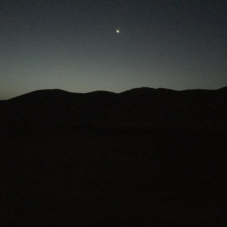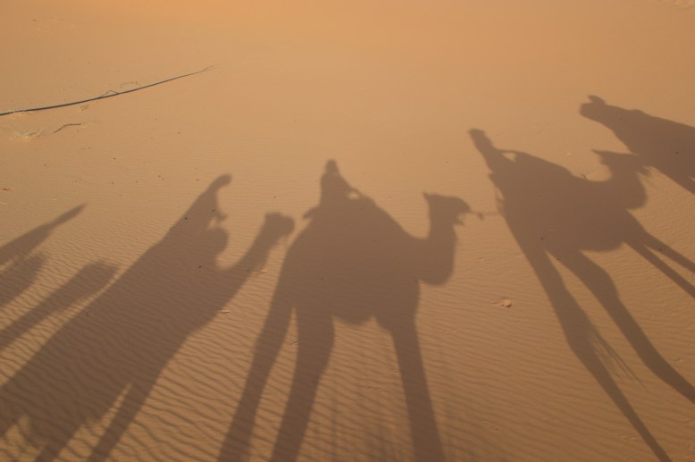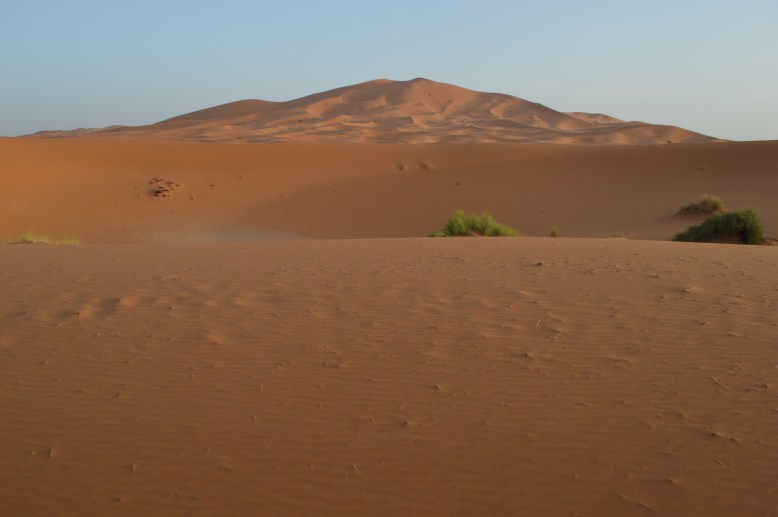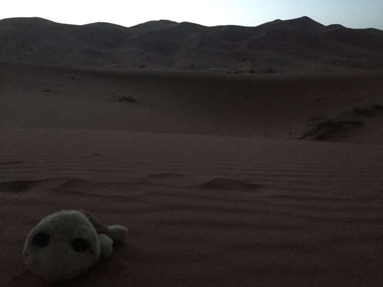 The only glitch in the night was when I got up to go to the bathroom. I headed in the direction that I thought I needed to go and ended up stumbling and sliding down a sand dune that was much steeper than I remember. I tried to correct my course but I could not make out where I was going and it seemed to be making it worse. I had a fear that I would be lost in the desert. I decided the only real option was to head back the way I came, only it was far too steep for me to walk back up! So I had to crawl on my hands and knees back up to where our mattresses were. All the while there was a mini sand storm going on – whirling around me. It was quite an experience looking back! Thankfully when I made it back up to our mattresses one of the other girls woke up (I scared her coming of the ridge – she thought I looked like a lion) and we went together – much easier to navigate as a group! The next morning when we told Mohamed about our escapades he could not stop laughing.