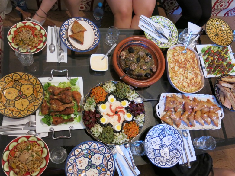 Surprisingly enough, given today was our longest drive, we were all looking forward to today after Mohamed’s lovely offer of lunch at his home. We certainly couldn’t complain about the view for our 6 h 2 min (373.1 km) drive. The start of our journey was truly stunning as we traversed the high Atlas Mountains. We made a small stop at an Argan oil cooperative where the women showed us how the make the oil and the different things it can be used for! We even got to taste a peanut butter and honey version – actually quite delicious! We made a quick stop at a supermarket and we wanted to bring something to Mohamed’s house – never show up empty handed! We chose a try of 36 little cakes!