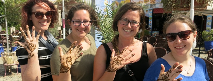Mohamed’s wife and sister-in-law then invited us girls into a separate room to draw henna on us. It was so lovely to sit and chat with them, about our lives and theirs – both teachers – and Mohamed came in halfway through bearing their wedding photo album for us to all look at! They were stunning! It felt very special to be invited so warmly into their home. We thanked them profusely as we said our fond farewells and continued on our journey.